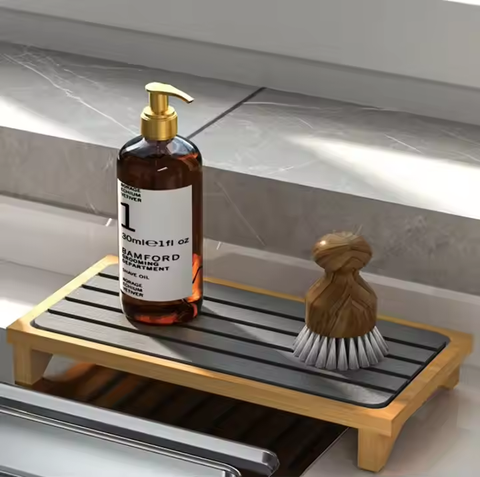 डायोटोमाइट पत्थर पकवान सुखाने सिंक कैडी मैट बांस रैक गैर-पर्ची पैर मुड़े डिजाइन बहुक्रियाशील रसोई भंडारण धारक गिनती